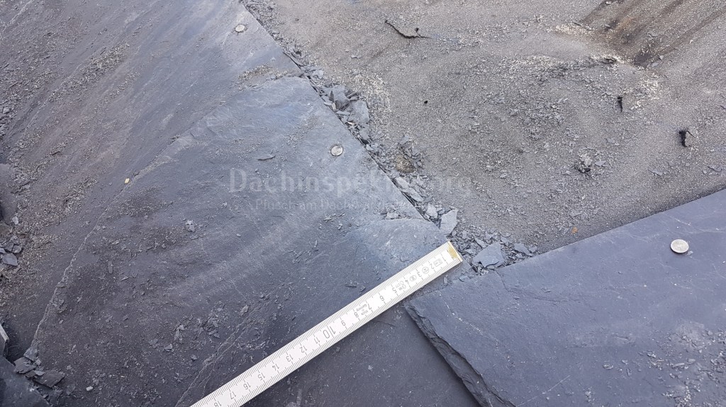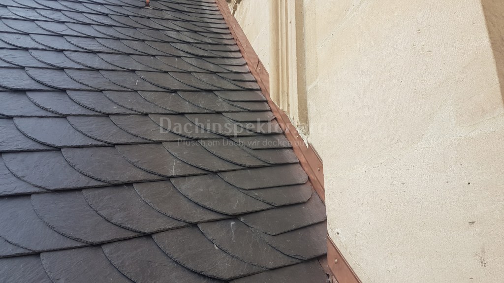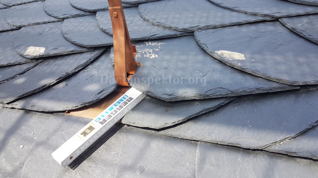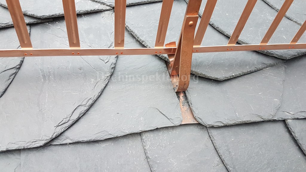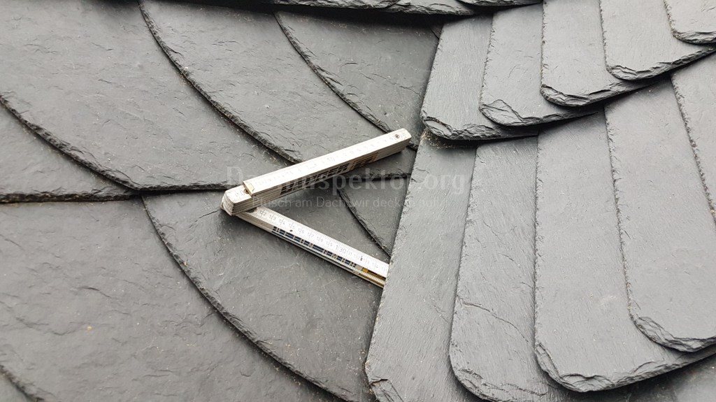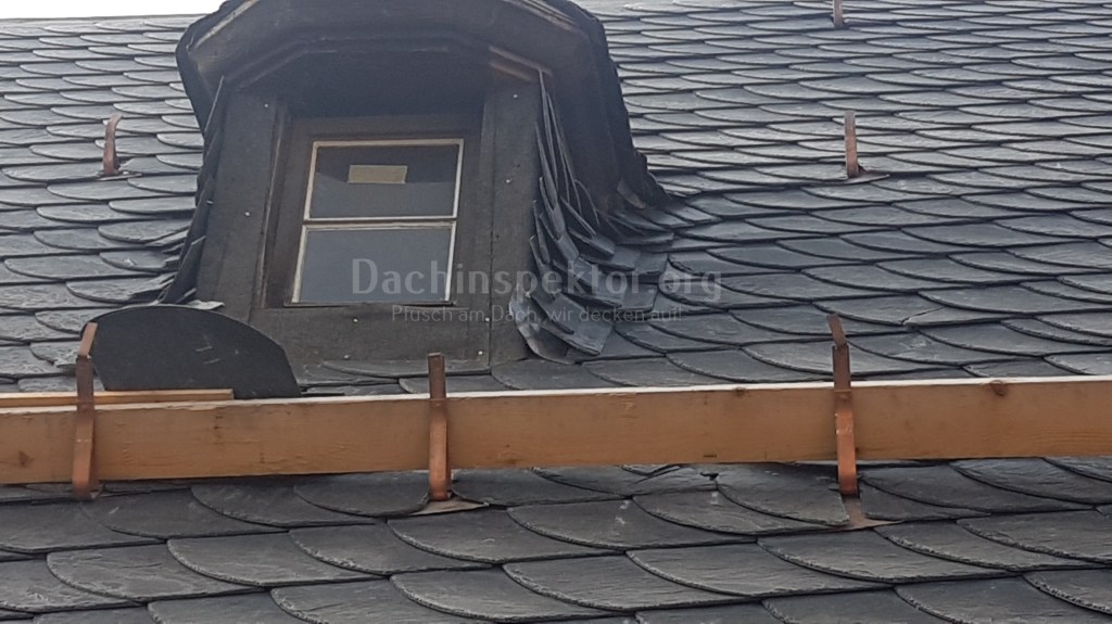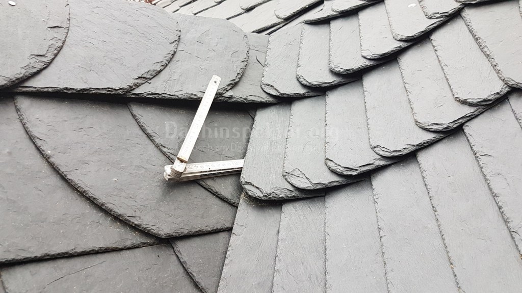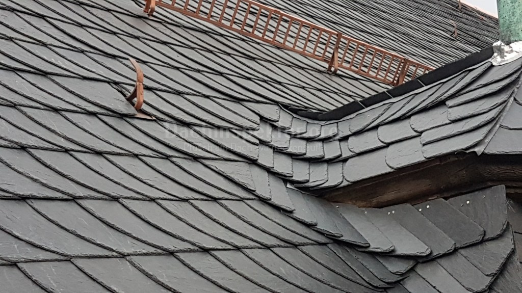 Diese Arbeiten wurden von einem kleinen Handwerksbetrieb gefertigt. Diese Betrieb ist diesmal kein Meisterbetrieb. Diese Arbeiten haben mit einer Schieferdeckung nichts zu tun. Es ist eine Schande für unser Handwerk.